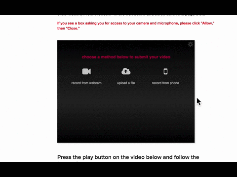 In the box below, click "record from webcam." RECORDING WILL BEGIN IMMEDIATELY.